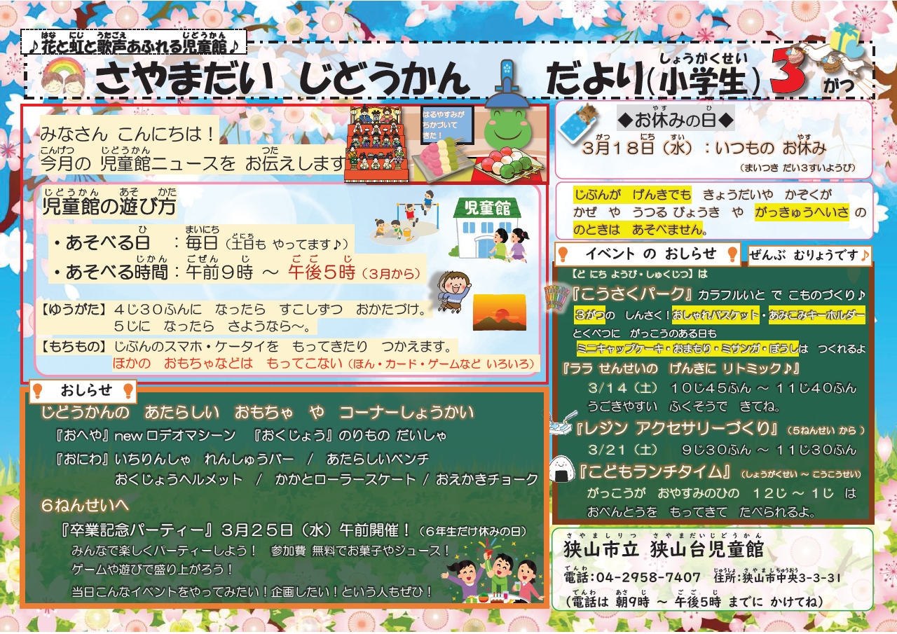 狭山台児童館 電話:04-2958-7407(9時~17時)